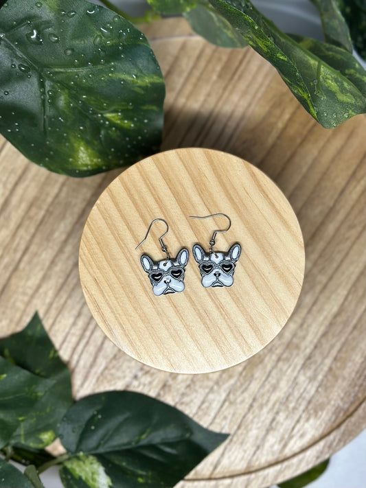 Dogs - Frenchie Heart Eyes Earrings - Black & White