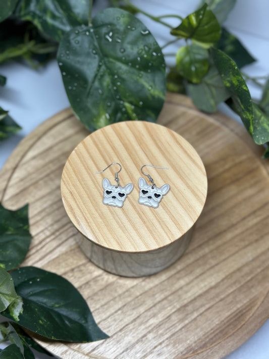 Dogs - Frenchie Heart Eyes Earrings - White 1