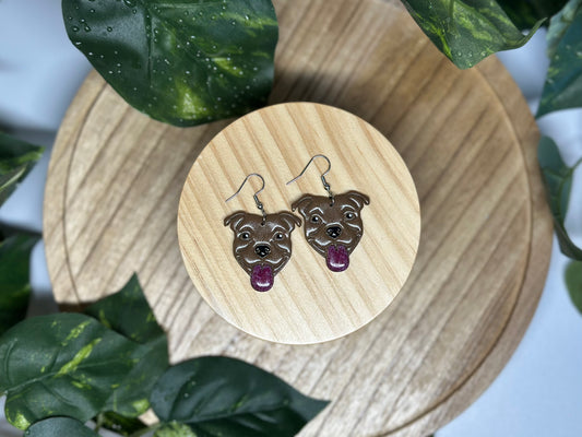 Dogs - American Bulldog / Pitbull Earrings - Chocolate