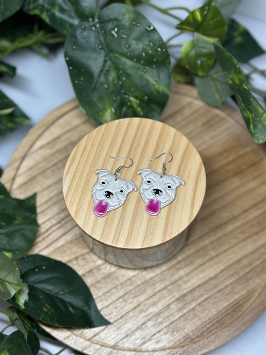 Dogs - American Bulldog / Pitbull Earrings - White