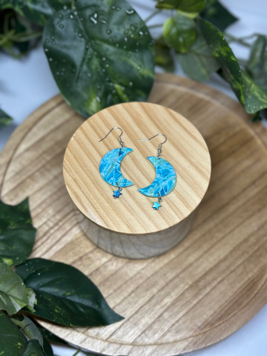 These lightweight earrings are made from polymer clay. If you aren't familiar with polymer clay, it is a non-toxic synthetic modeling clay made from a plastic polymer base, and once cured in the oven, produces a very durable finished product. The earrings are then sanded and smoothed, drilled, some have a thin layer of resin or varnish, and finished with hypoallergenic, stainless steel findings. Please keep in mind, though the product is durable, the earrings still need to be handled with care, especially the more delicate designs. Please avoid contact with perfumes & lotions, remove before showering/keep away from moisture, and if you are needing to clean your earrings, gently wipe them with a slightly damp (with water) non-abrasive cloth.