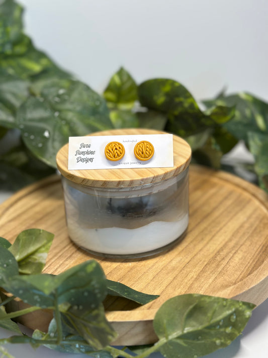 Circle Braided Stud Earrings - Mustard
