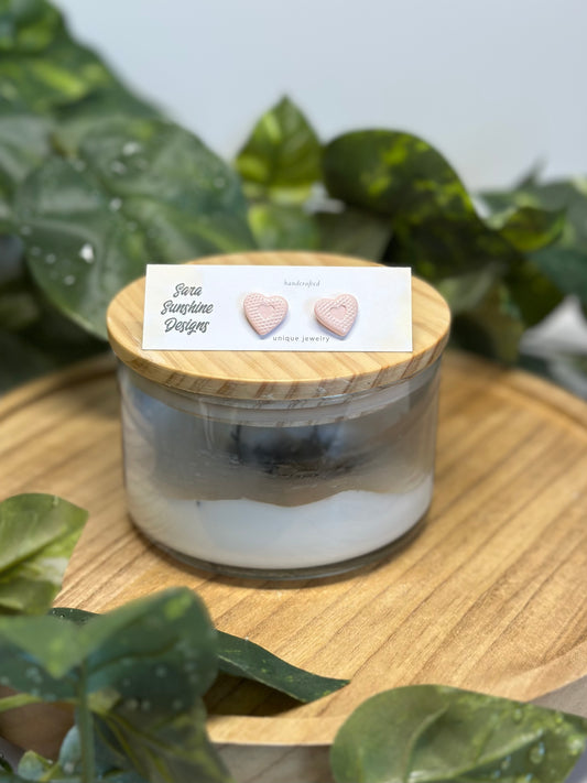 Heart Stud Earrings - Light Pink