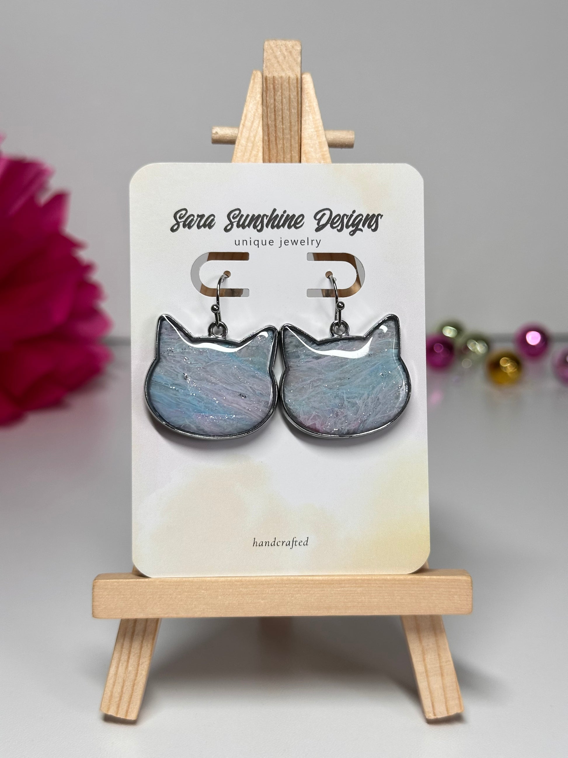 Cat Head Earrings - Cotton Candy