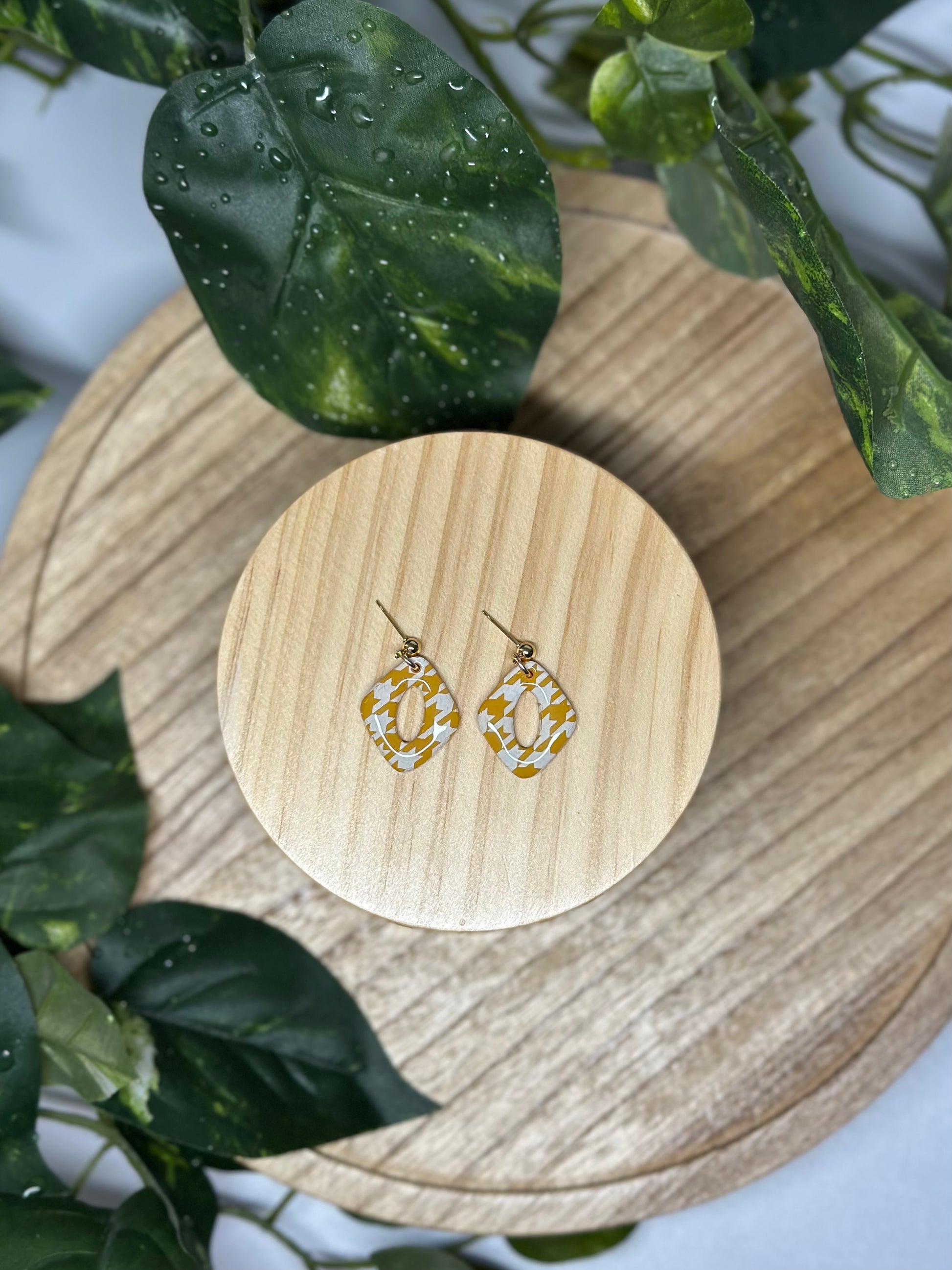 Curvy Small Cutout Rhombus Earrings - Mustard & White Houndstooth