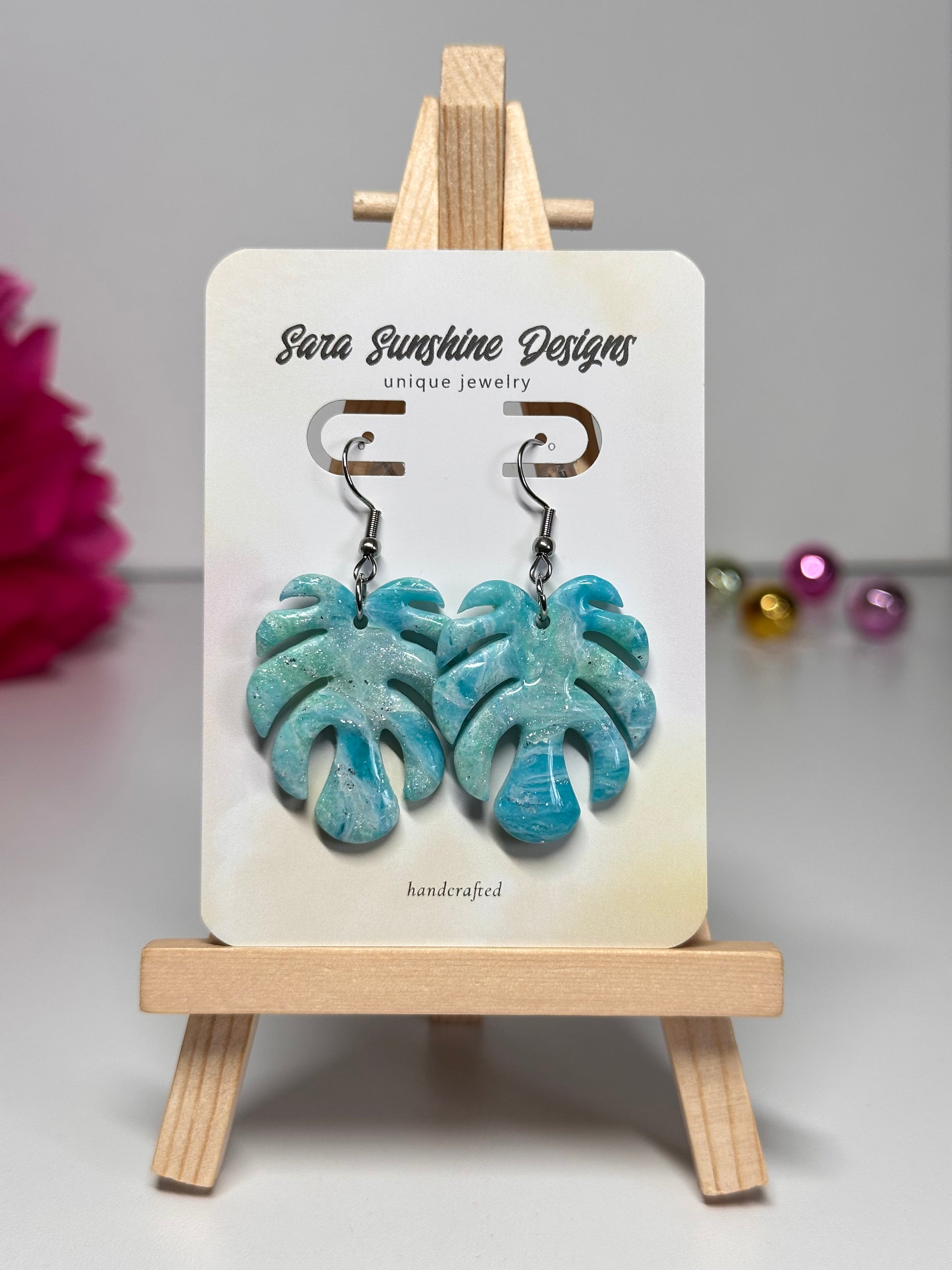 Monstera Leaf Earrings - Blue Green